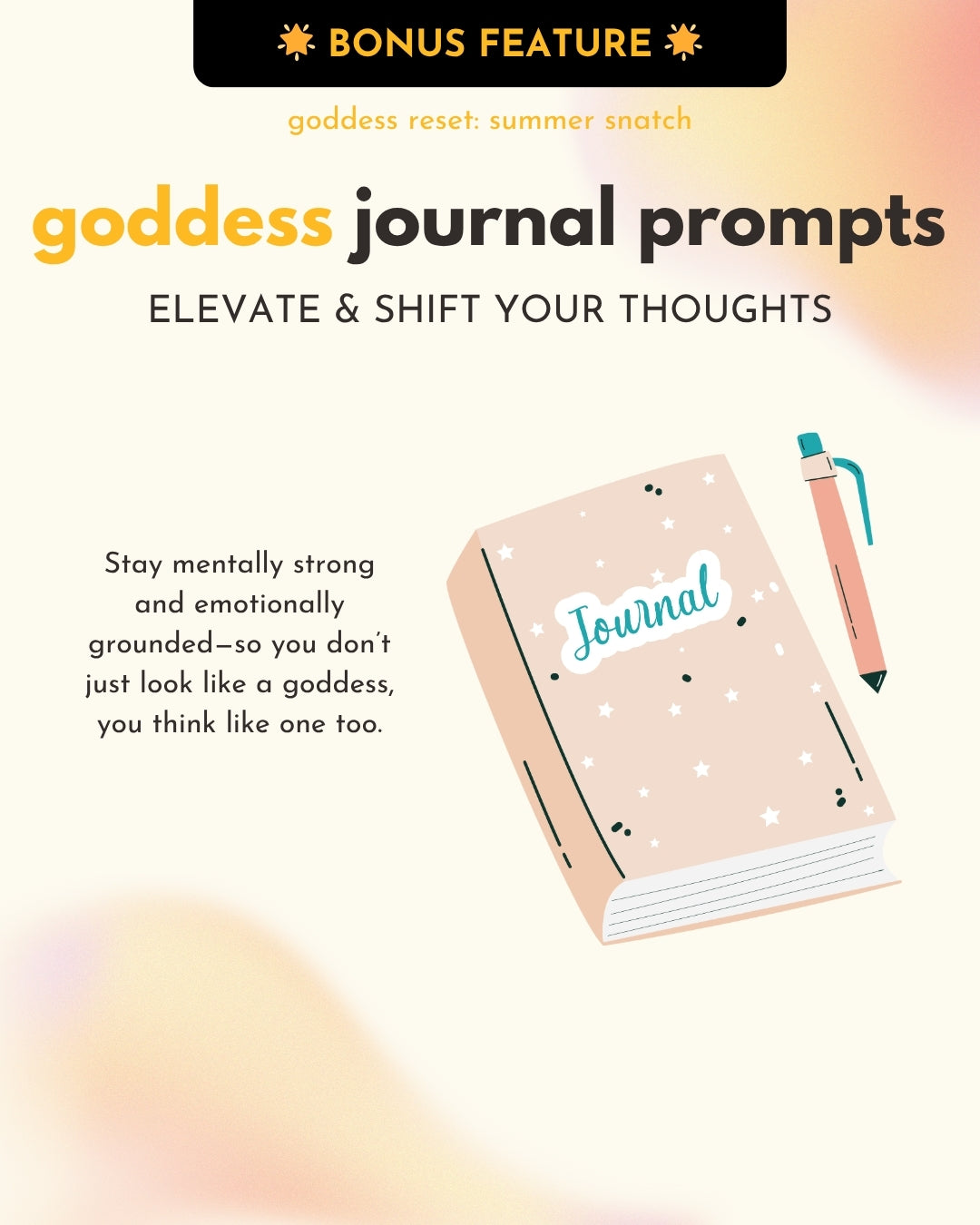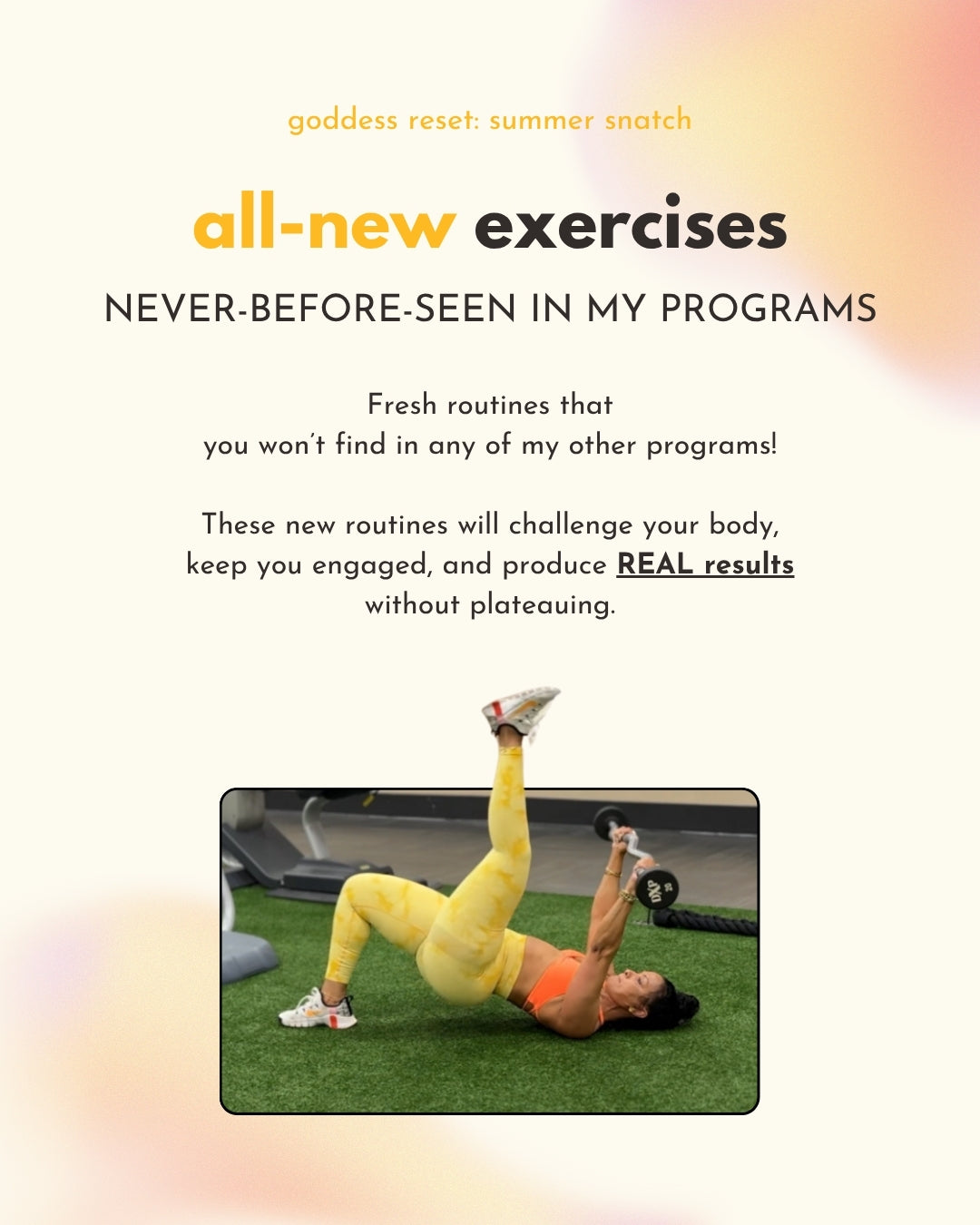 I created the Goddess Reset: Summer Snatch program to help you build real confidence from the inside out. This 6-week program will sculpt your body, tighten your waist, and elevate how you walk into every room.